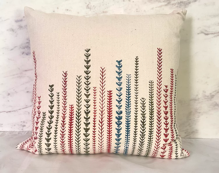 Block-printed on soft cotton, front and back, Rangavalli cushion covers brings creepers to life in vibrant, earthy hues. It doesn’t ask for attention but when it gets it, it holds it.